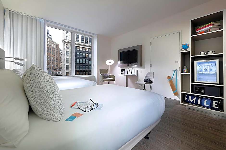 Located on the 19th and 20th floor, this room offers a view of the Manhattan Skyline. It also features a flat-screen TV with Bluetooth connectivity, a bathroom with rain shower and coffee machine. It is equipped with dual European and North American electrical outlets as well.